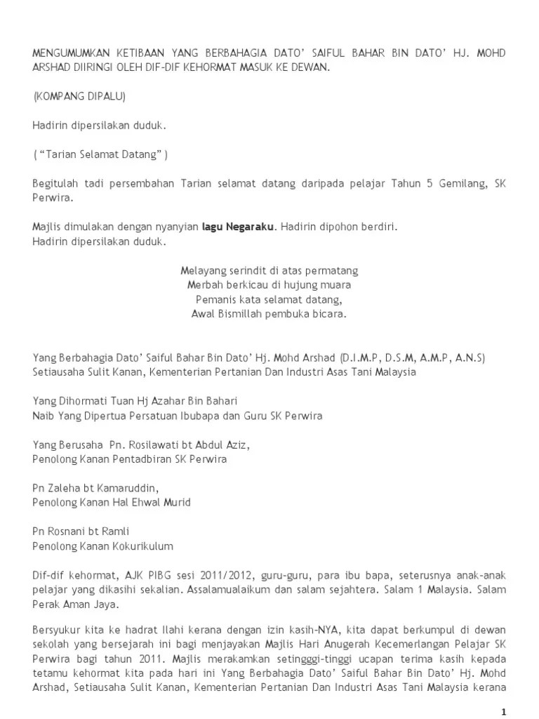 Kecemerlangan pelajar mencerminkan perkembangan serta kemajuan sekolah, dalam melahirkan modal insan dan seterusnya membuktikan. Mengumumkan ketibaan encik jumat bin jaafar, yang dipertua persatuan ibubapa dan guru, diiringi barisan penolong kanan, dan ahli jawatankuasa persatuan ibu bapa dan guru sk taman molek. Teks ucapan perasmian hari anugerah kokurikulum sma nilai. By golden rose 37467 views. Documents similar to teks ucapan perasmian anugerah cemerlang.