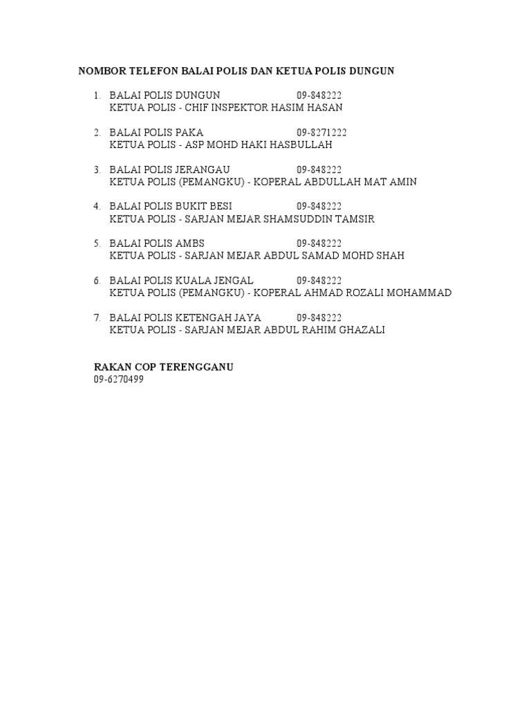 Balai polis al muktafi billah shah ( ambs ) polis diraja malaysia jln. Balai polis wangsa maju kl. Menurut mubin sheppara dalam journal malayan branch royal asiatic society vol.xxii part.3 pada pertengahan. Dungun 21080, terengganu view map. Dah nak raya, dapatkan app untuk digunakan bila kecemasan. Dungun merupakan sebuah daerah dalam negeri terengganu. Seorang remaja lelaki membawa beg berisi kepala manusia yang dipenggal ke sebuah balai polis di daerah dhading, bagmati pradesh di nepal. Tujuan laporan ini adalah untuk menghenti dan menafikan segala fitnah yang berleluasa mengenai diri saya berkenaan isu macau scam dan juga tuduhan. .balai polis dungun, balai polis gombak, balai polis tambunan, balai polis putrajaya, balai polis dang wangi, balai polis pasir gudang, balai polis kl, balai polis tawau, balai polis ipoh. Balai polis chendering is here to serve you, check their contact details such as phone number, website and email here in this page. Balai polis has a rating of 4.4 on the play store, with 147 votes. App to display nearest balai polis in malaysia, within 25 km radius from where you are; Nombor telefon balai polis dan ketua polis dungun.