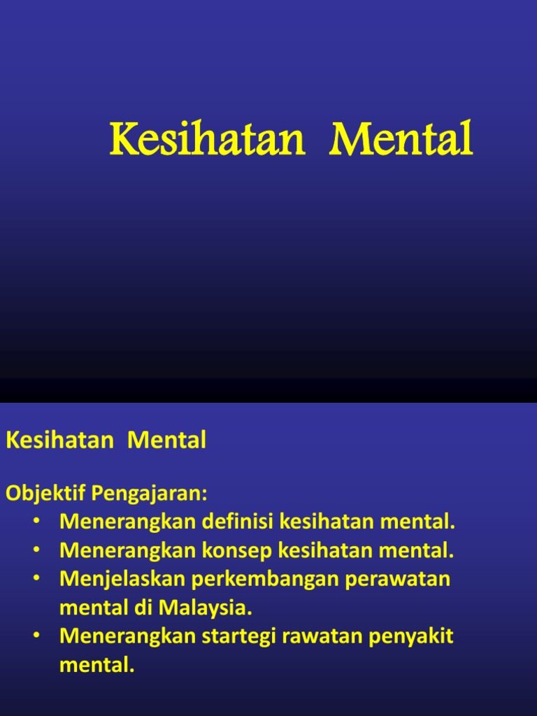 Walau bagaimanapun, seseorang yang mengalami masalah kesihatan mental atau gangguan mental seperti kemurungan lazimnya tidak tampil mendapatkan bantuan disebabkan oleh pelbagai faktor, misalnya stigma sosial dan kepercayaan terhadap sesuatu pegangan. Krisis kesihatan yang begitu teruk dalam sejarah ini dilihat memberikan kesan yang berkekalan terhadap sesebuah institusi dia menambah bahawa banyak kampung di luar bandar sabah tidak mempunyai talian telefon. Walau bagaimanapun kami percaya ia merupakan penyakit yang amat berbahaya jika tidak diberikan perhatian dari segi kaedah perubatan. See more of malaysian mental health association on facebook. Aktivisi promosi kesihatan mental di sekolah (contoh: